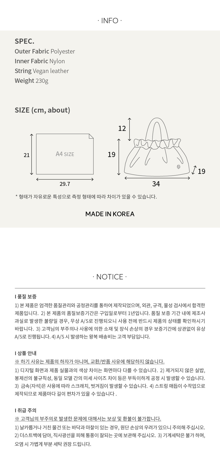 · 데일리백으로 사용하기 좋습니다